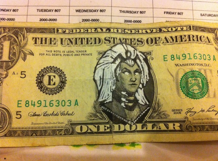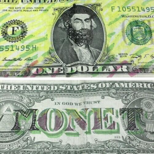 日本で落書きすると通貨変造罪になるので真似したらイカンですよ