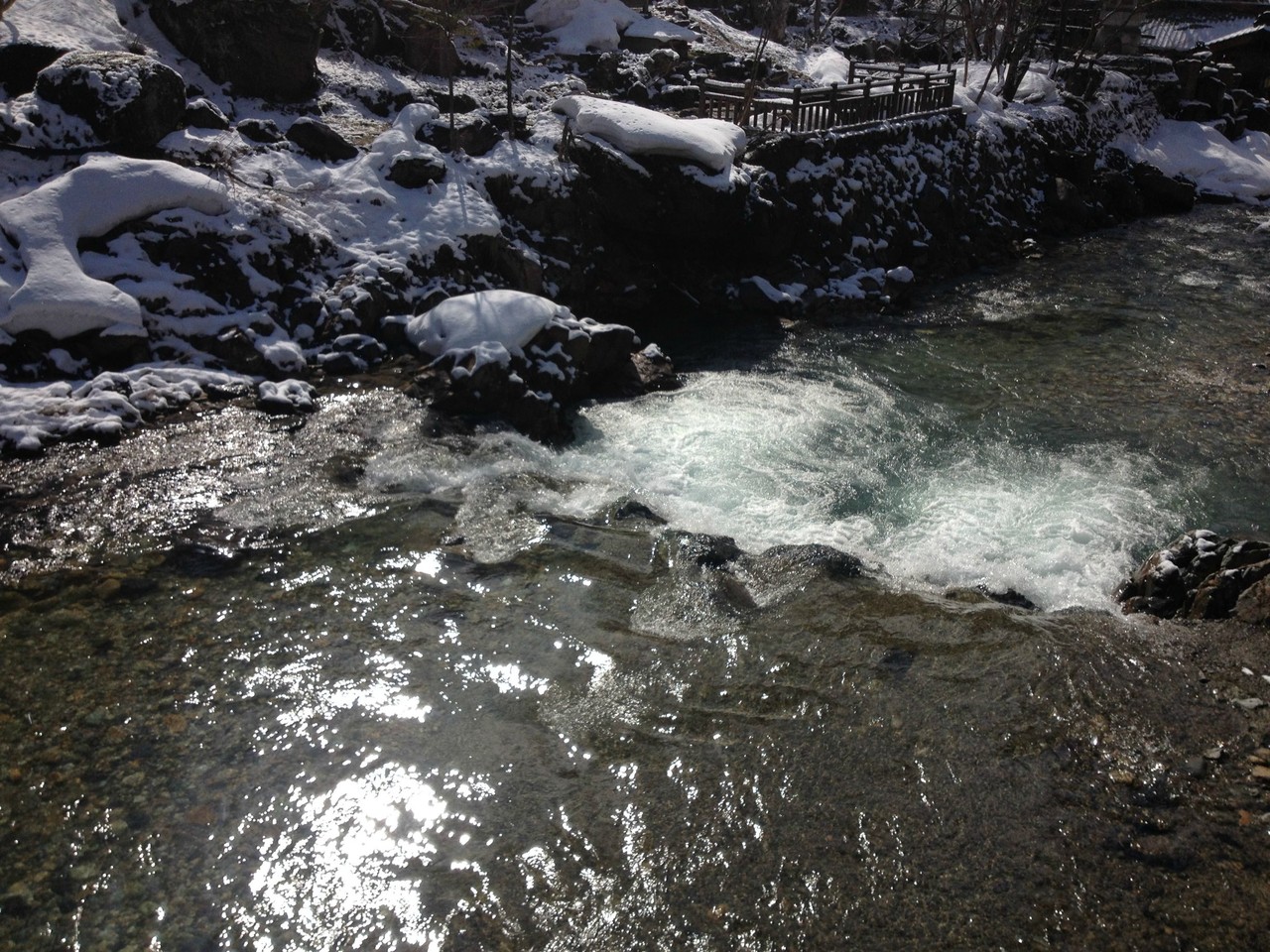 次の日は朝からは快晴、雪解け水が川に流れていく