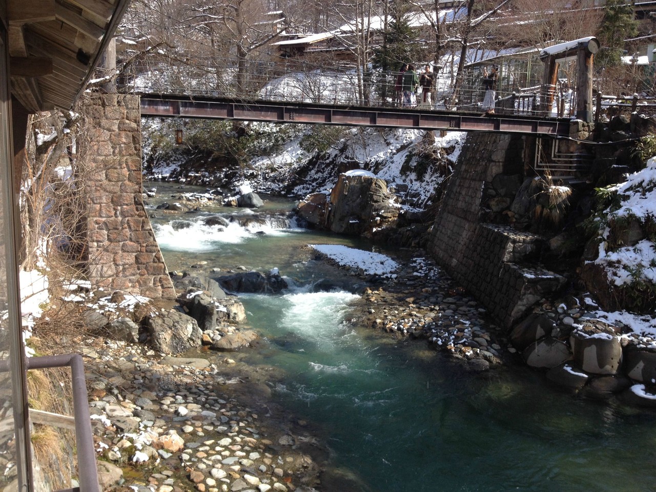 旅館に戻る時の橋と、橋から見た下流