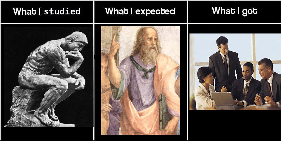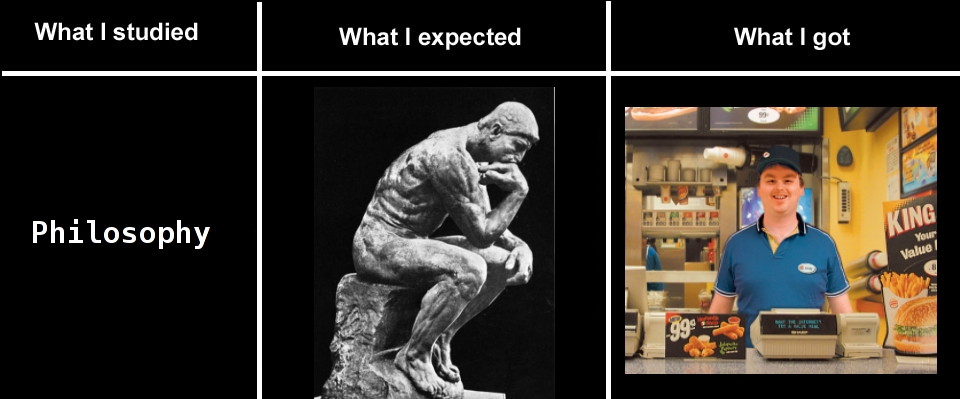 万国アノニマスさん 哲学を学んだなら、もっといい仕事探しなよ。市場調査とかのアナリストとかなら出来るって。