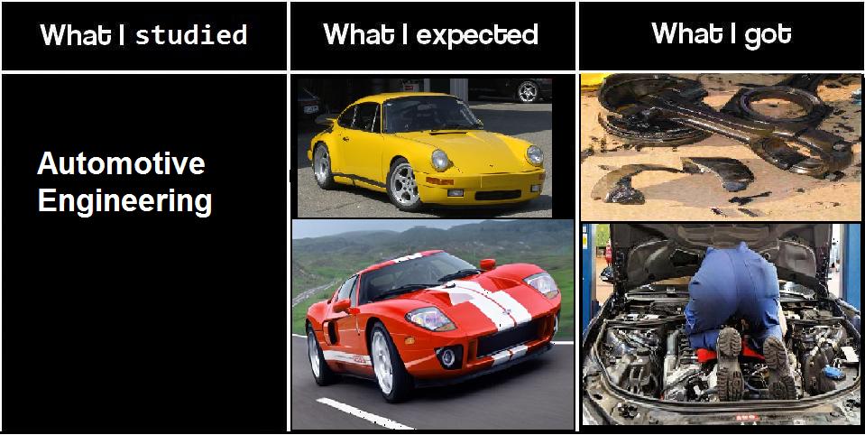 車の設計やデザインを期待してたけど、現実は車の修理や車検ばっかってだけ