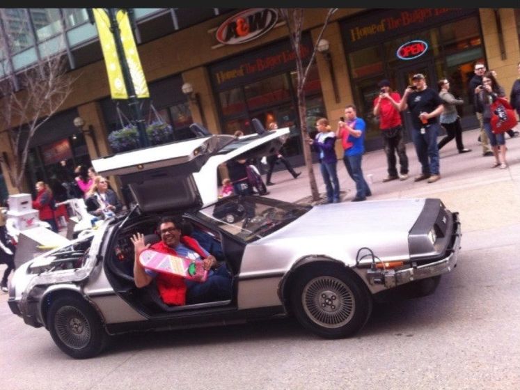 デロリアンに乗ってるのがウチの市長だった(※カナダのカルガリー市長とのこと)