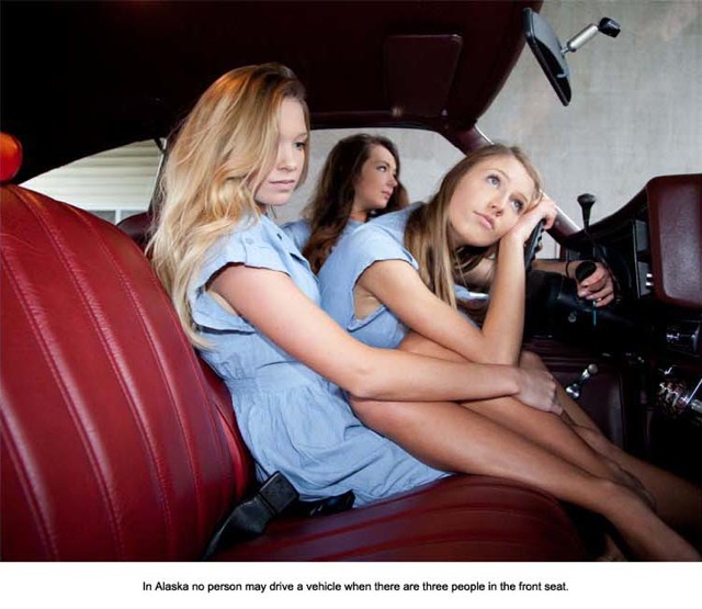 ⑯アラバマでは、フロントシートに3人乗って運転すると違法