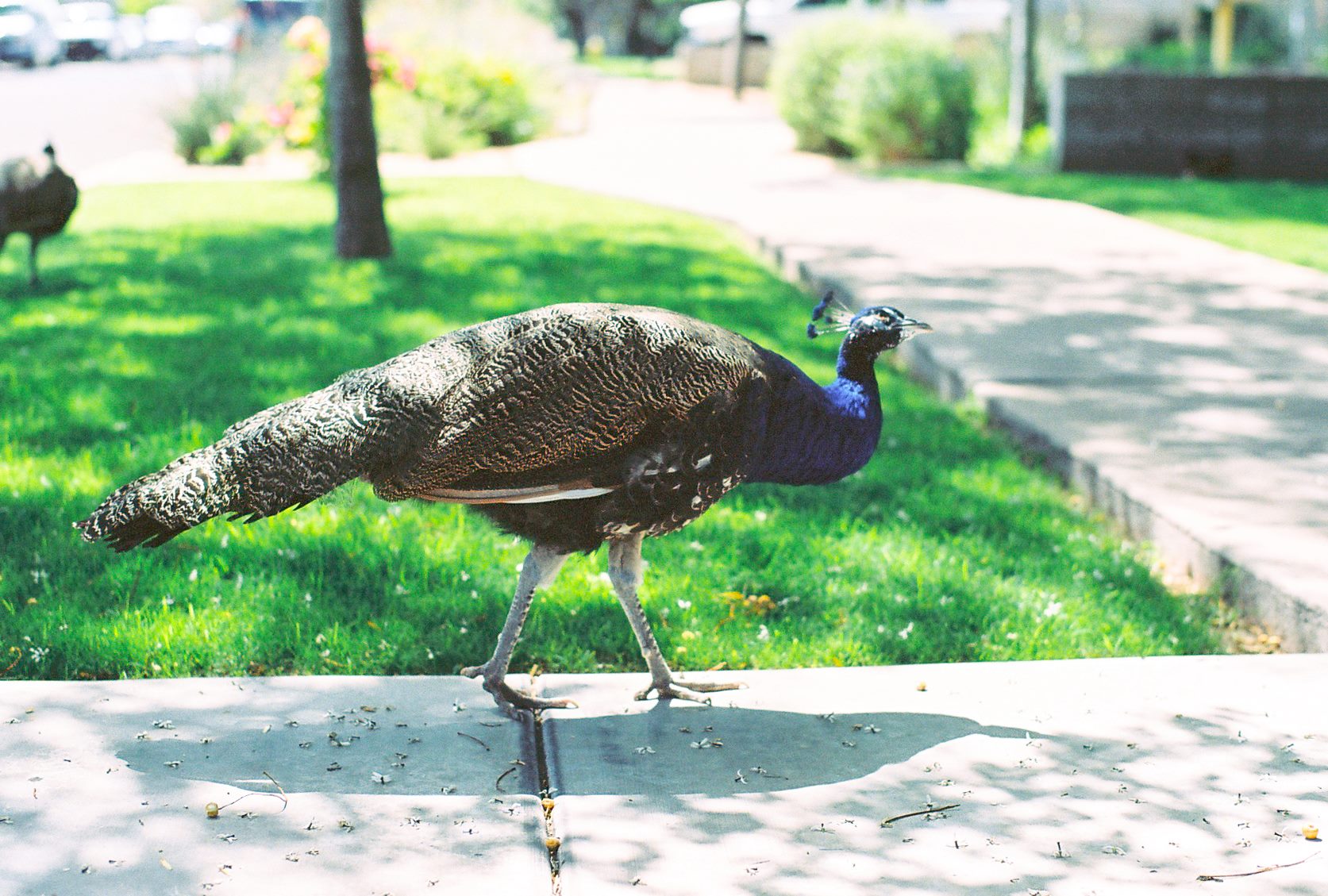 クジャクの羽の抜ける時期には、飾り用にもらいに来る人が多いと言ってたな。