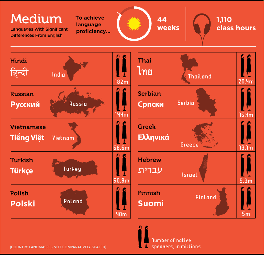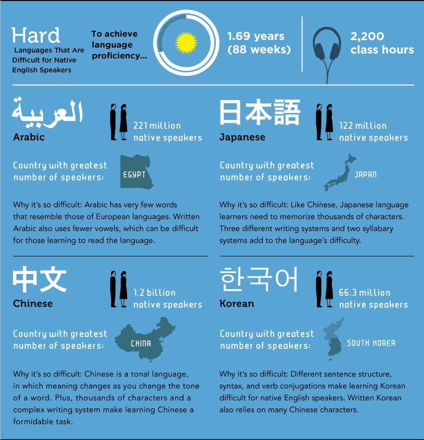 参考までに、下の画像は英語のネイティブスピーカーの習得難易度