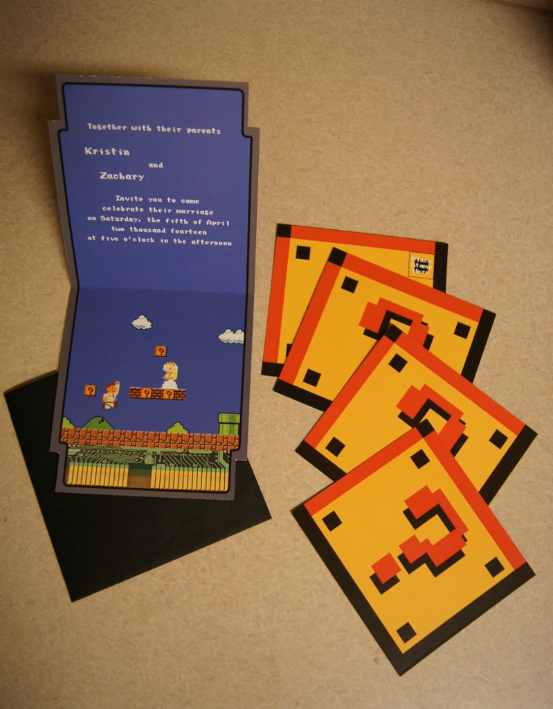 結婚式の招待状。封筒から中身までスーパーマリオ風!