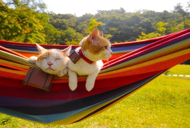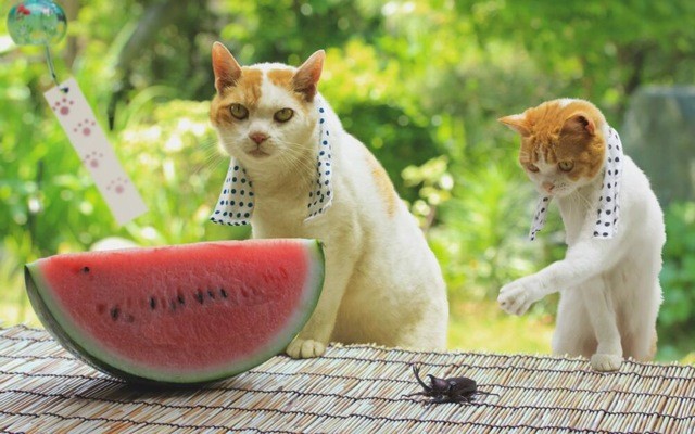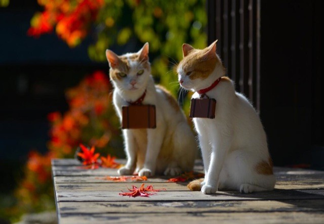 スレッド「可愛すぎる日本ガイド」より。2匹のネコが日本の文化を紹介しているという旨の投稿が話題となっている。日本の四季や文化を満喫している2匹の様子がとても印象深い。