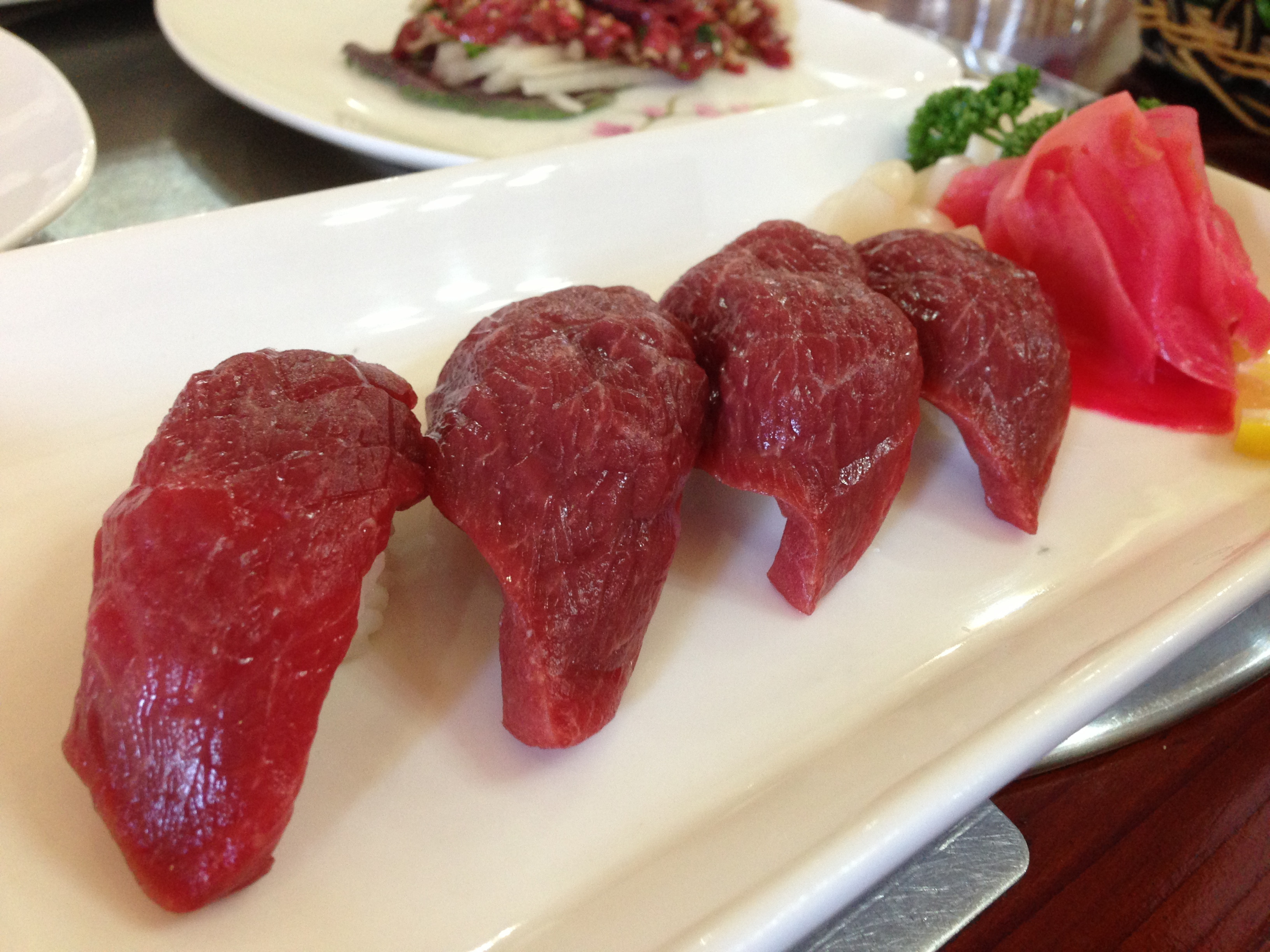 >韓国の済州島でも馬刺し料理が食える