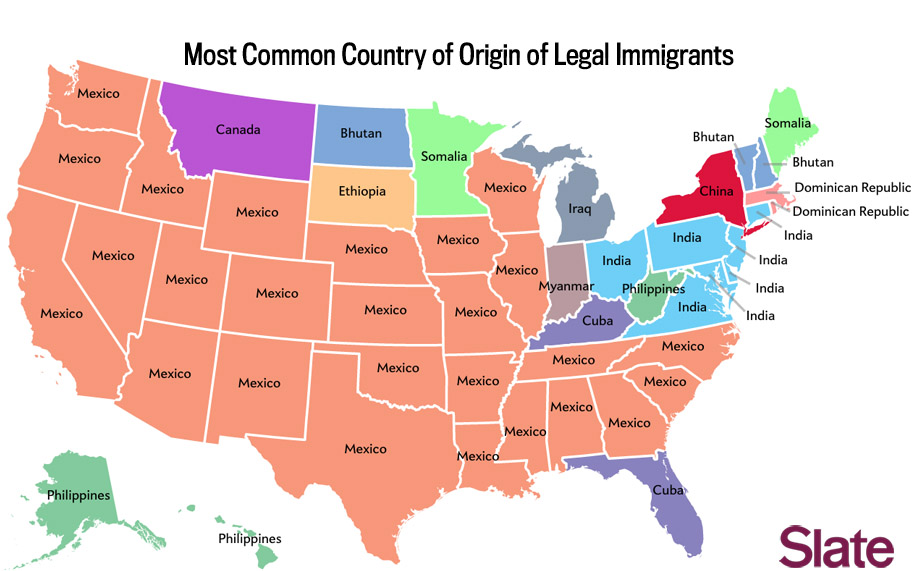 ※アメリカの州ごとの最大の移民、ミネソタとメーン州はソマリアがトップ。
