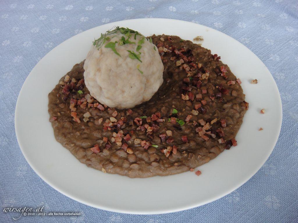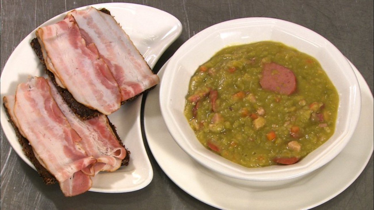 ベーコン+ライ麦パン、野菜と豆のどろどろシチュー/スープ(伝統的な食材もあるけど)