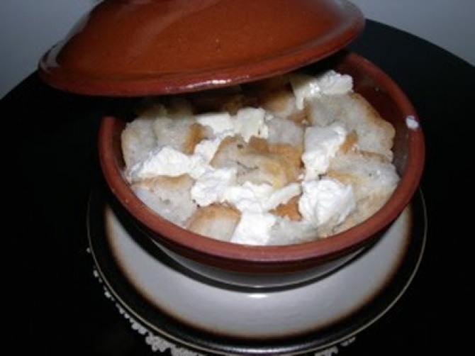 賞味期限が怪しいパンに塩をまぶし、サワーミルクをかけて調理する