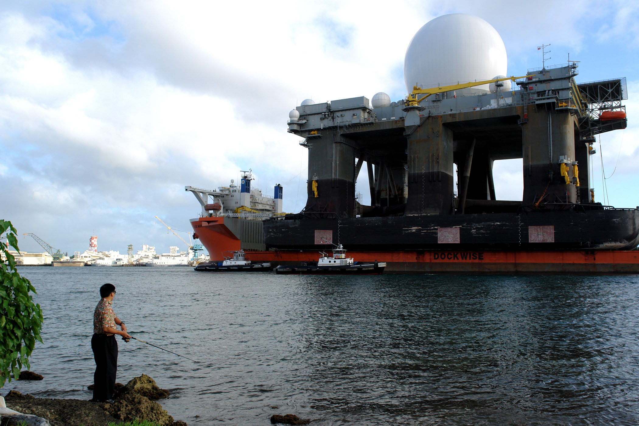 アメリカ国防総省のミサイル防衛システム、海上配備Xバンドレーダーを運ぶ様子