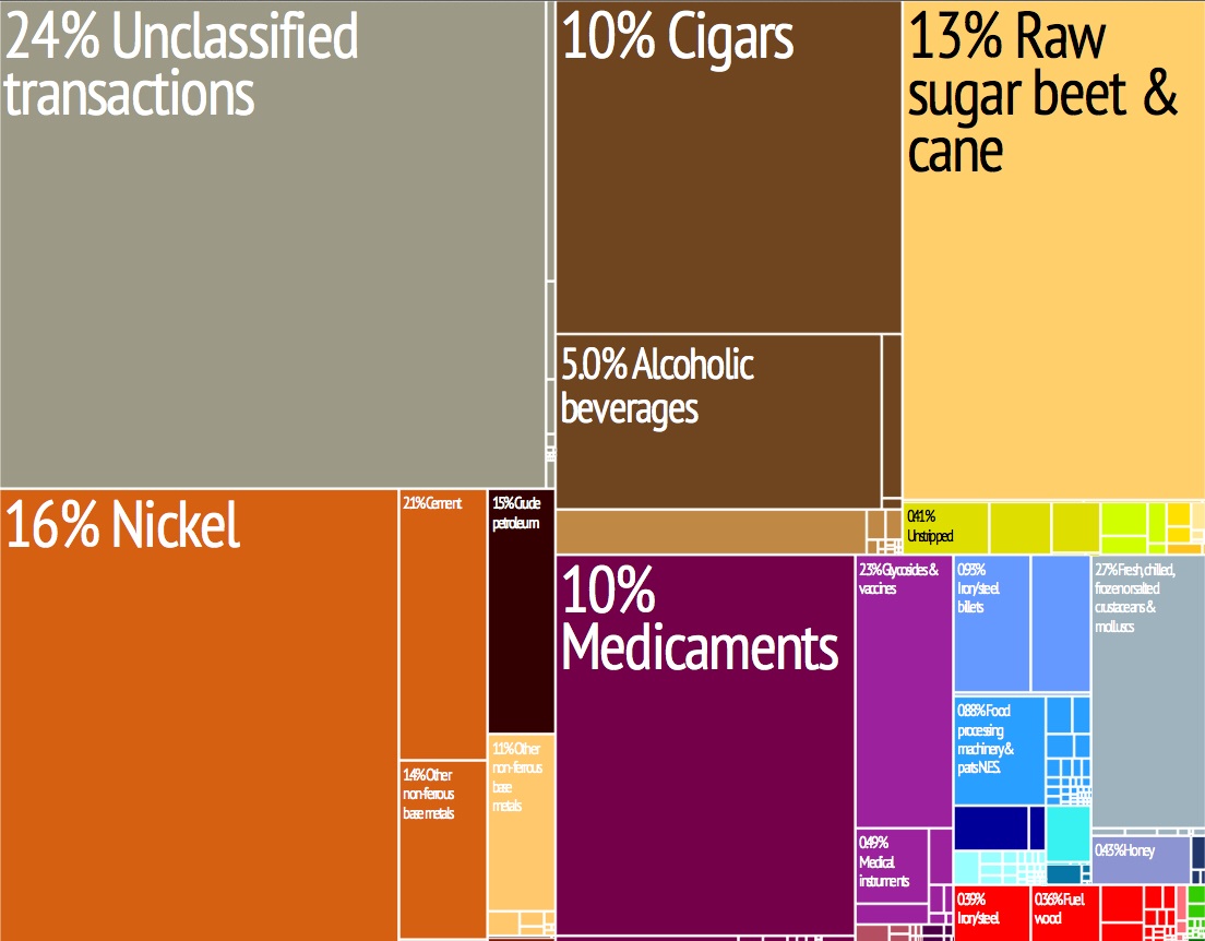 ※未分類の取引24%、ニッケル16%、甜菜13%、タバコ10%、アルコール飲料5%、etc