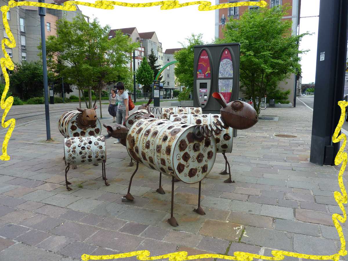 駅の近くなんだけど歩道沿いに数百メートルにわたって転々と意味不明のオブジェが置かれてる。