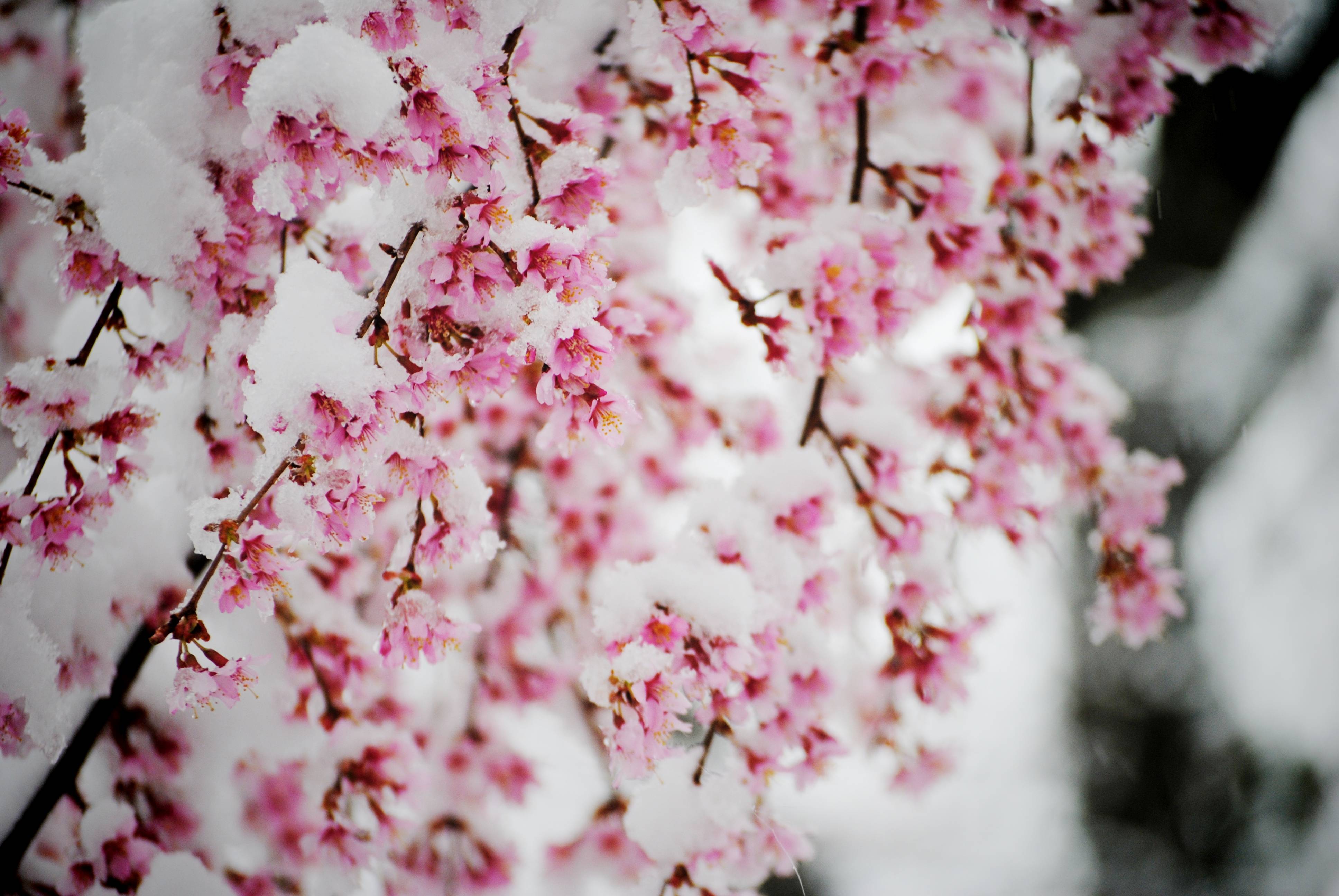 私の家の裏庭にもサクラがあって、毎年プールは花びらだらけになるよ
