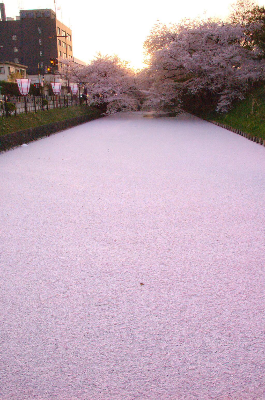 スレッド「桜の花びらでいっぱいの日本の川」より。