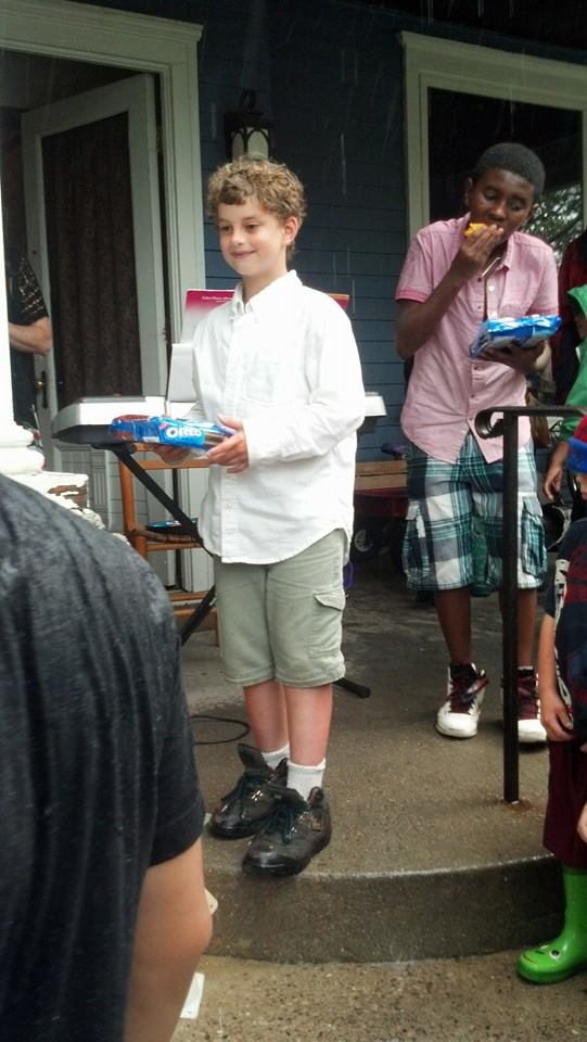 そして集まった人々、ディラン君はクッキーやオレオなどお菓子を配る
