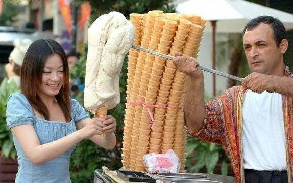 トルコアイス、本場のはパフォーマンスは楽しいけど思ったほど伸びなかったし、5種類くらい味があるけど違いがあんまりよくわかんなかった。味は普通。