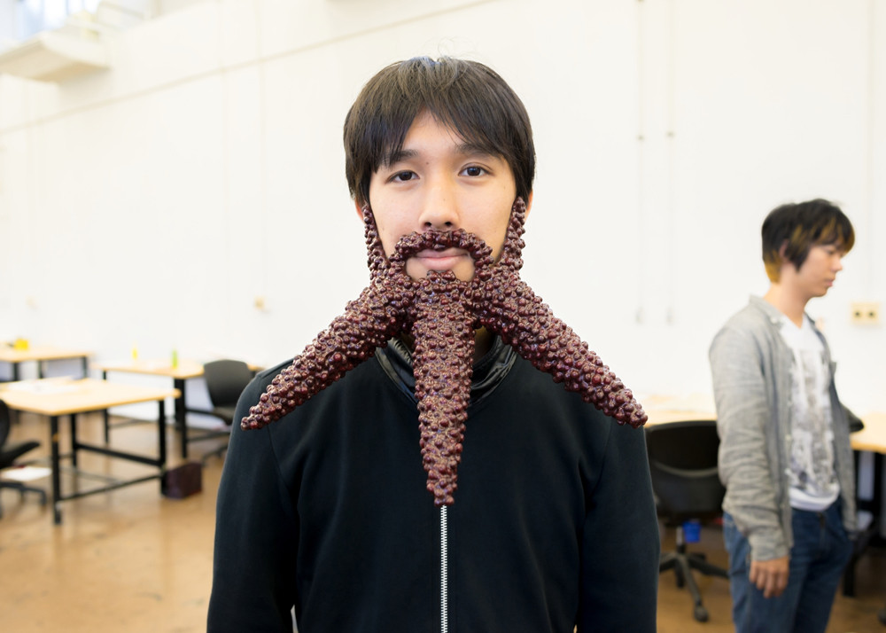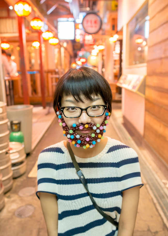 >小豆を顔に付けて髭に見立てたファッション及びファッションブランド「アズラー」が