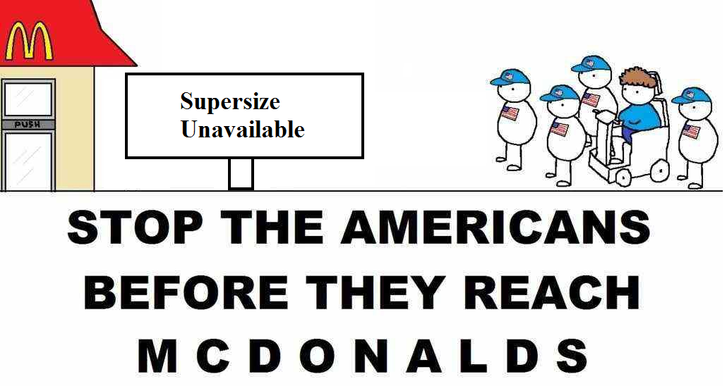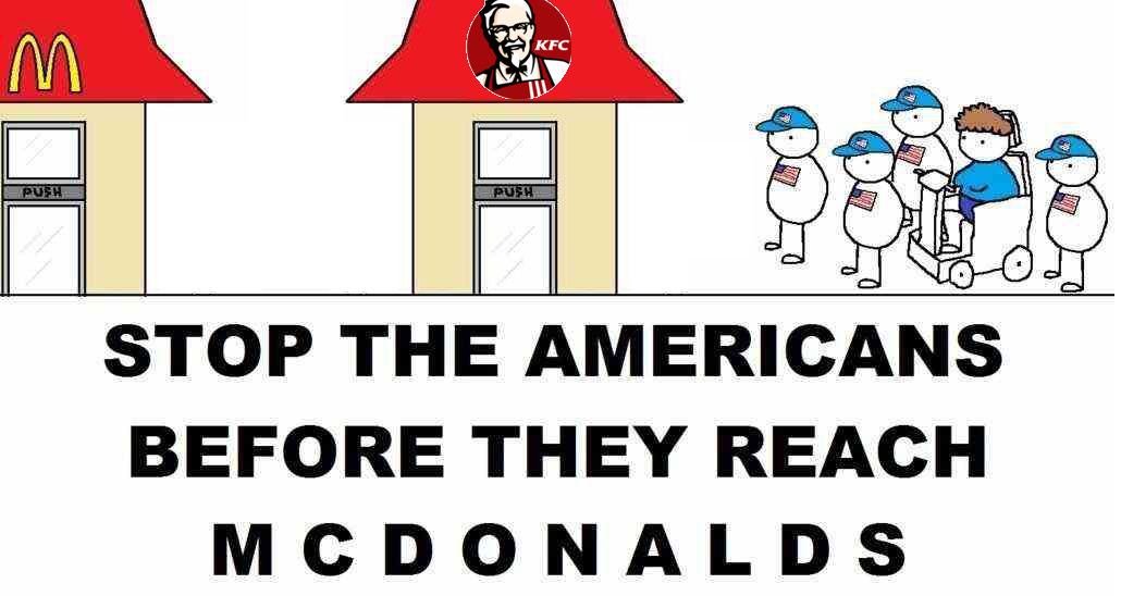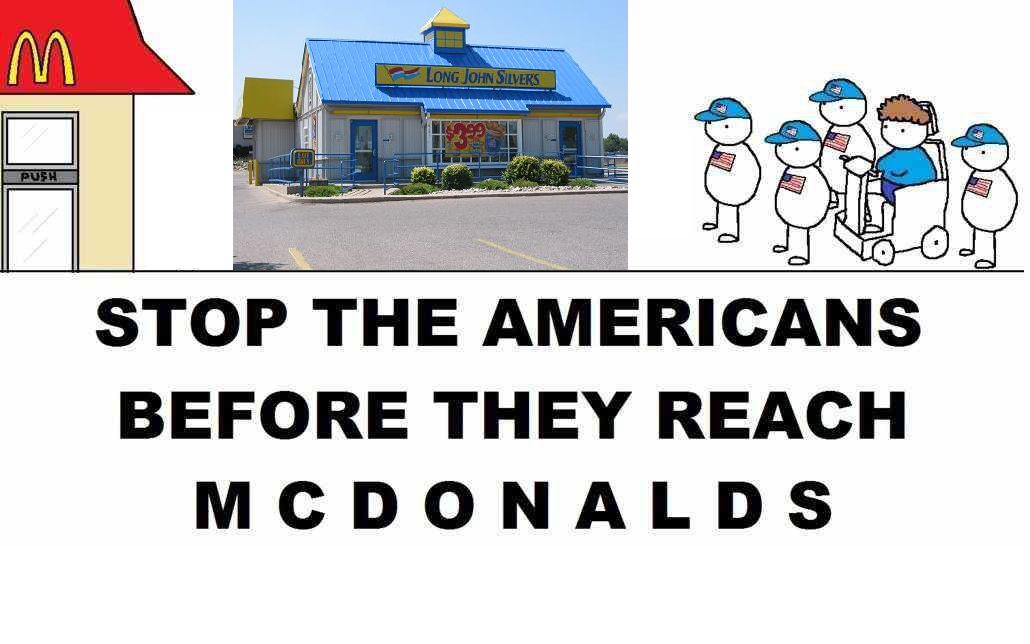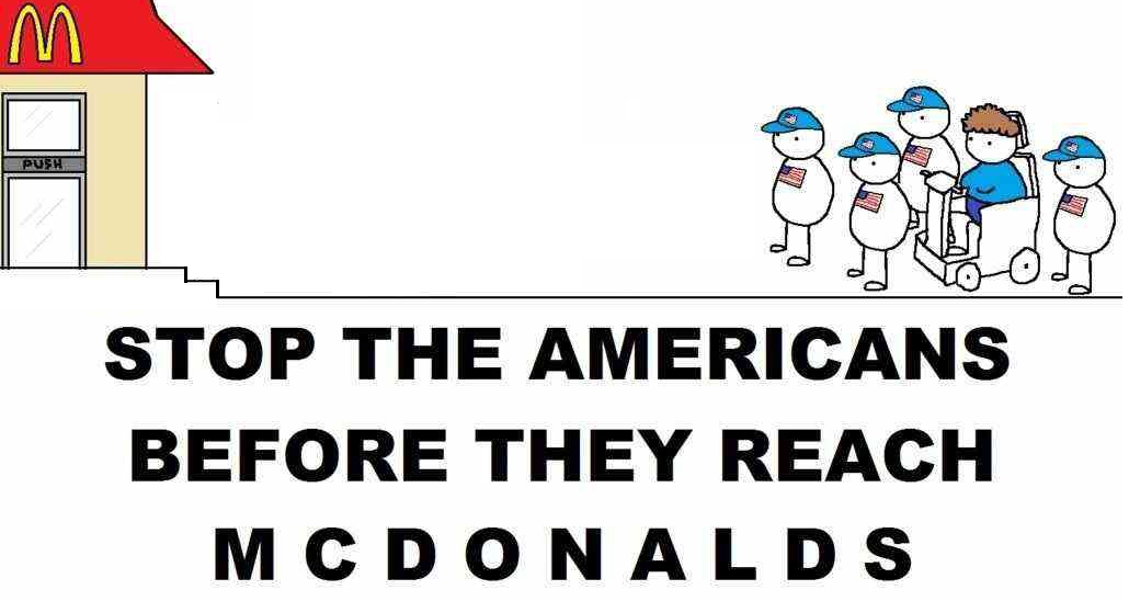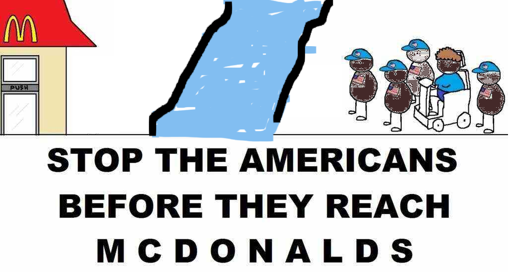 スレッド「阻止する方法」より。マクドナルドに到達するまえに、アメリカ人を阻止するには?というイラスト大喜利が話題となっている。