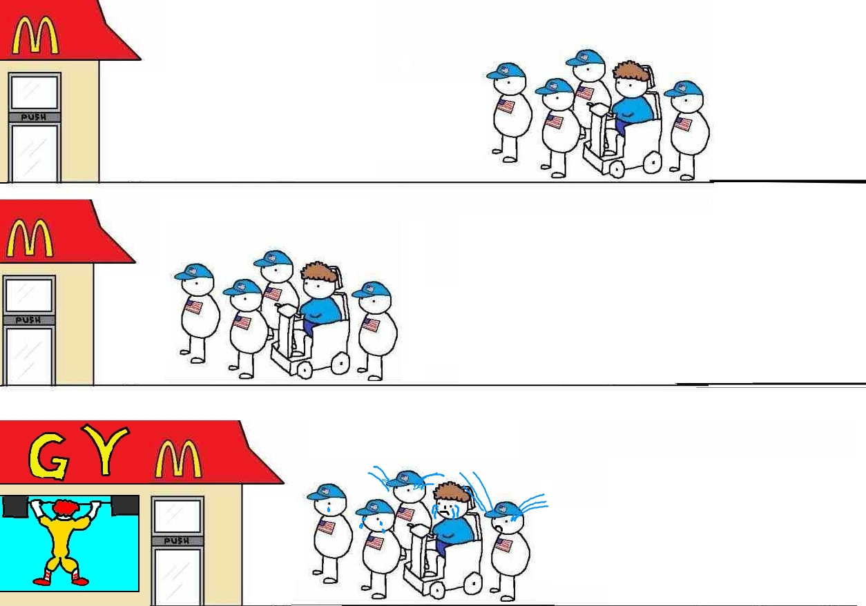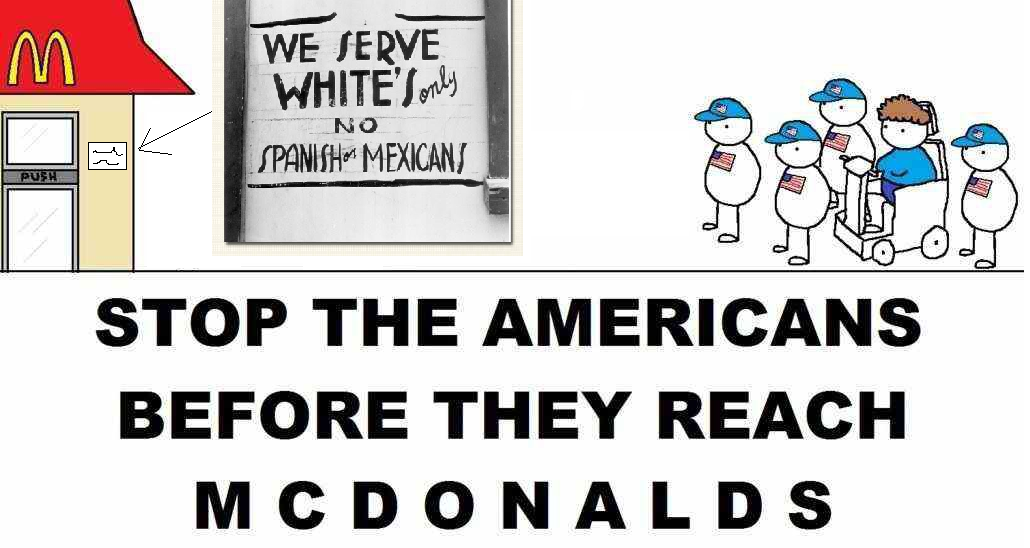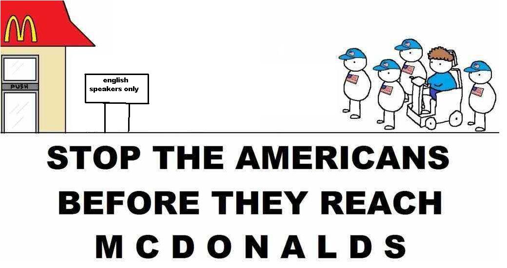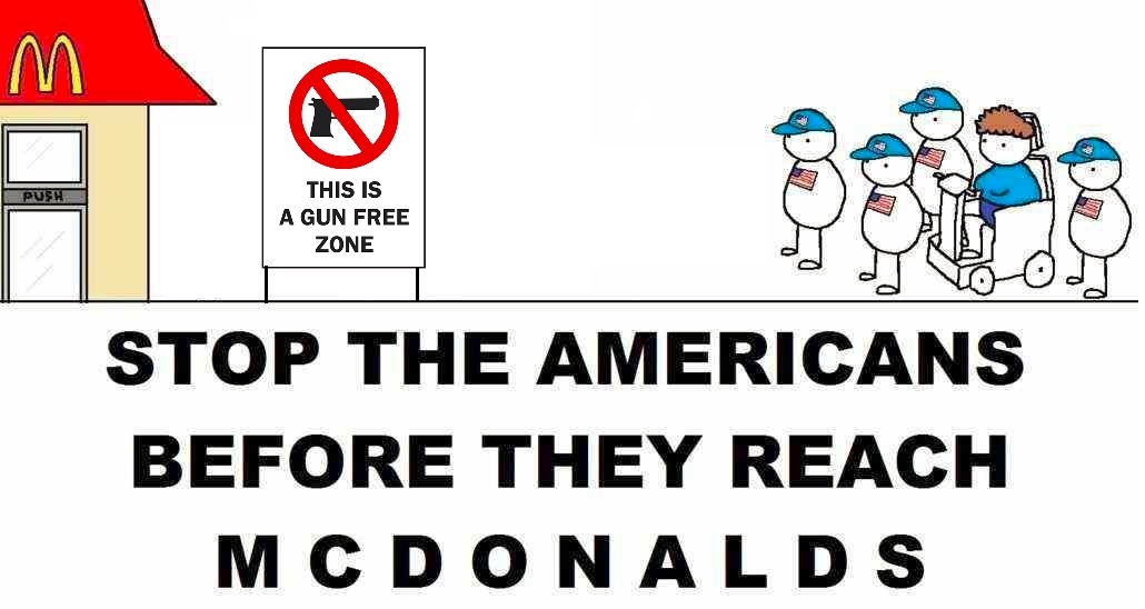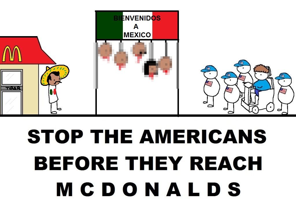スレッド「阻止する方法」より。マクドナルドに到達するまえに、アメリカ人を阻止するには?というイラスト大喜利が話題となっている。