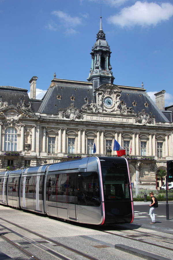 こっちはフランスのランスにある路面電車、シャンパンフルートガラスのような見た目にしている