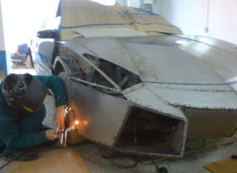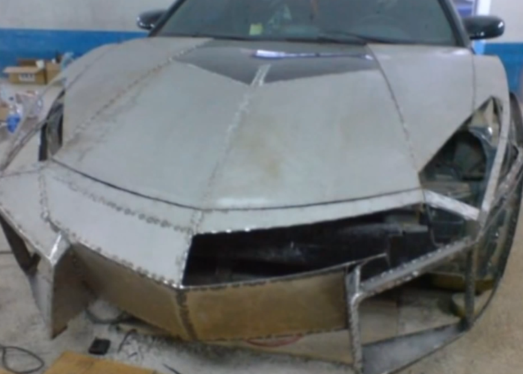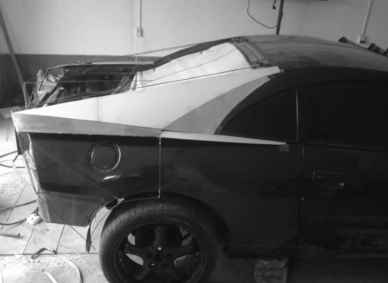スレッド「安い自動車をランボルギーニに進化させた男」より。とある外国人が2003年製の三菱エクリプスの外側だけをランボルギーニに改造し海外で大いに話題となっている。