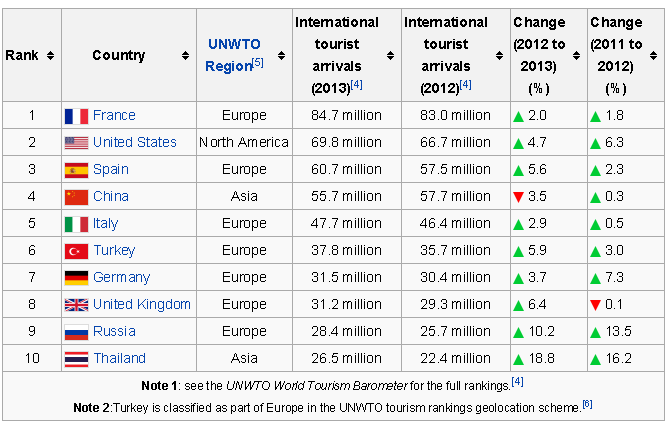 なぜ世界の観光客は、フランス・アメリカ・スペイン・中国に集中するの?