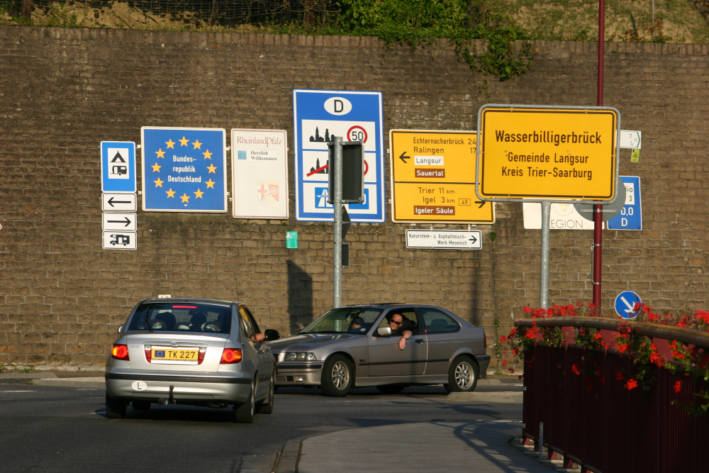 どの国境も道路なのにベルギーだけ木製の橋とはまたなんとも・・・