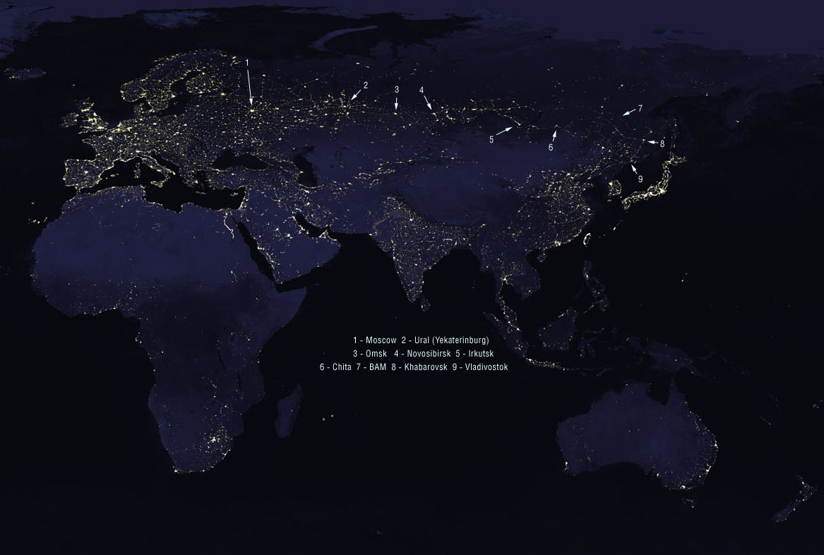 シベリア鉄道はモスクワからウラジオストクまで運行