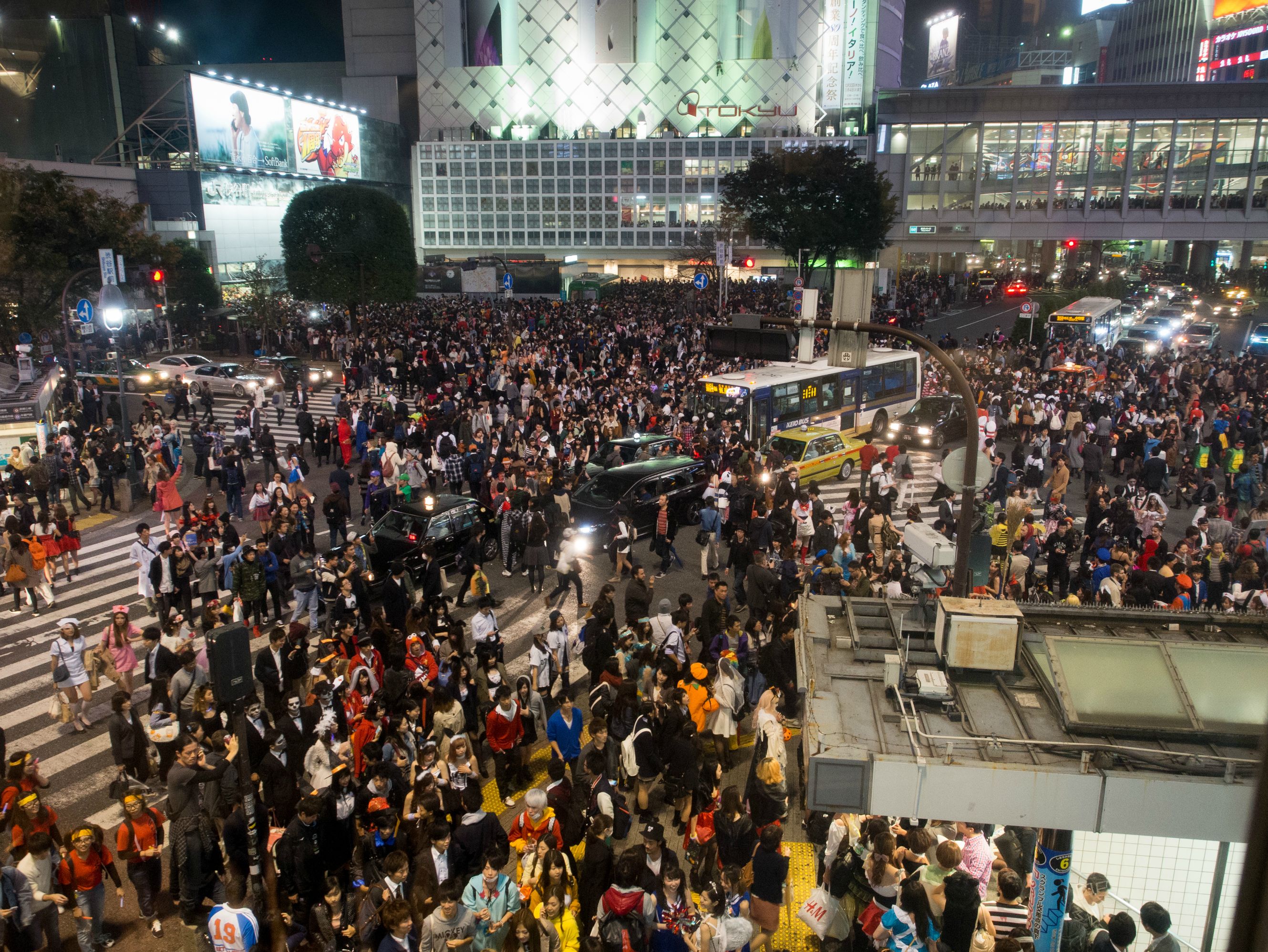9位 渋谷交差点・東京:ほとんどの人が東京をイメージする時思い浮かべる図『スクランブル交差点』。この日はハロウィンだったのでさらにクレイジーで大賑わい。
