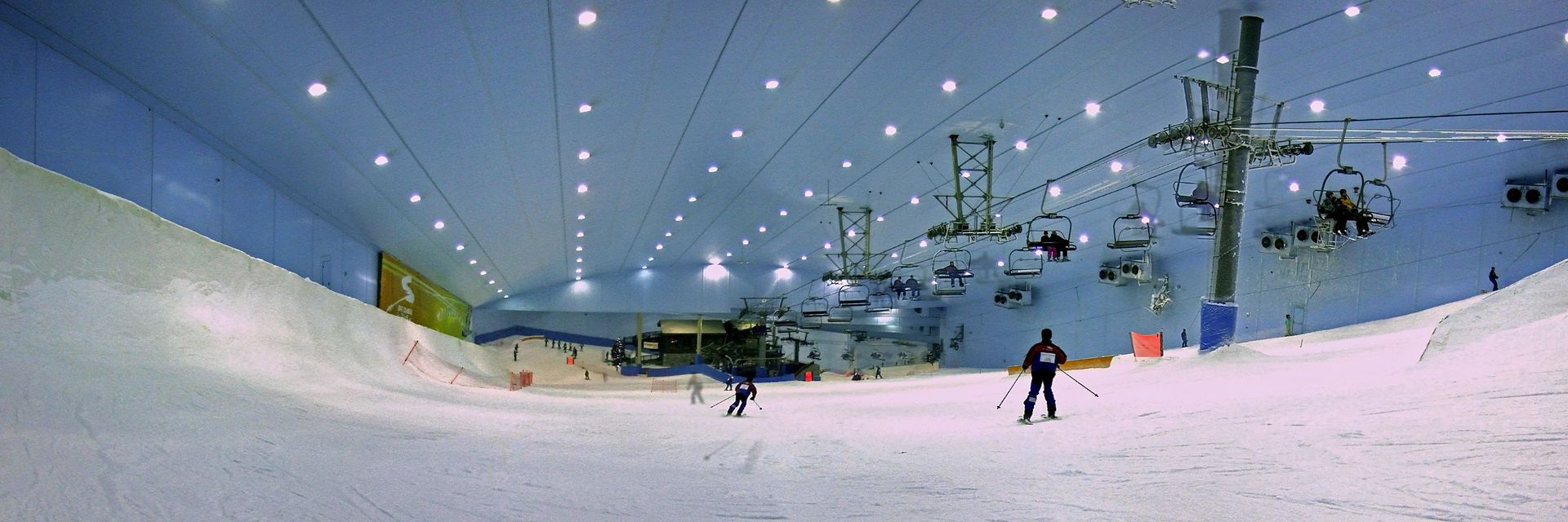 スキー・ドバイ:アラブ首長国連邦のドバイにある室内スキー場。下の階にあるショッピングモールおよびホテル施設と合わせ、現存する世界最大の室内スキー場である。ドバイでは年間降水量が少なく、砂漠気候で雪は降らない。