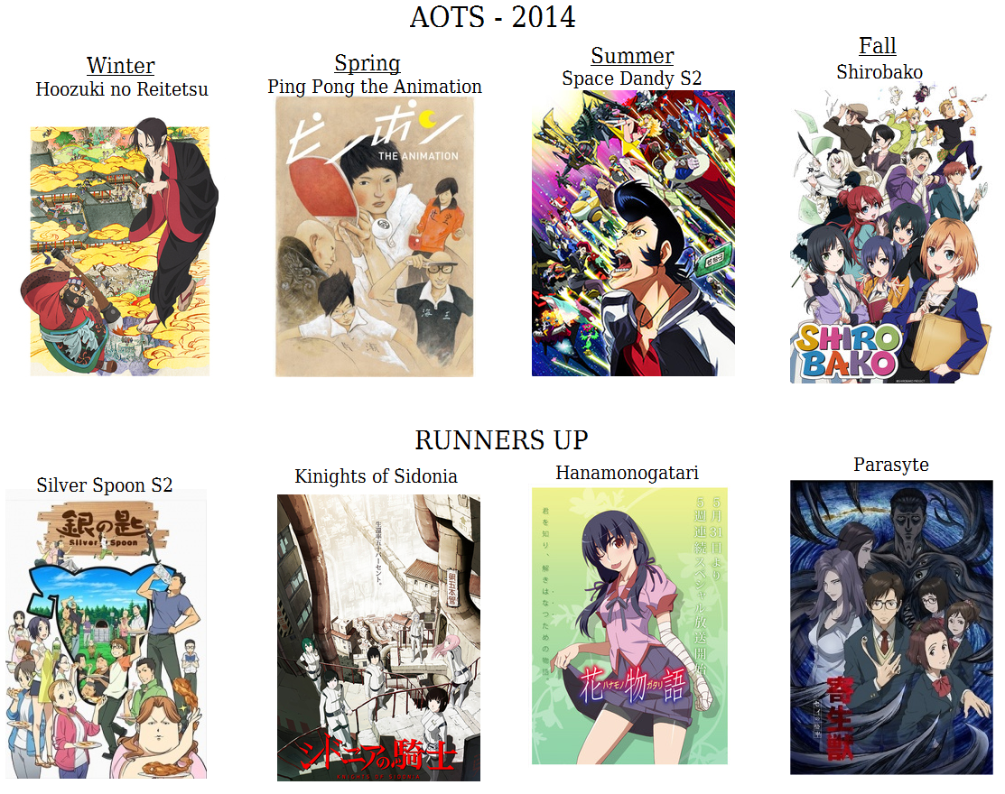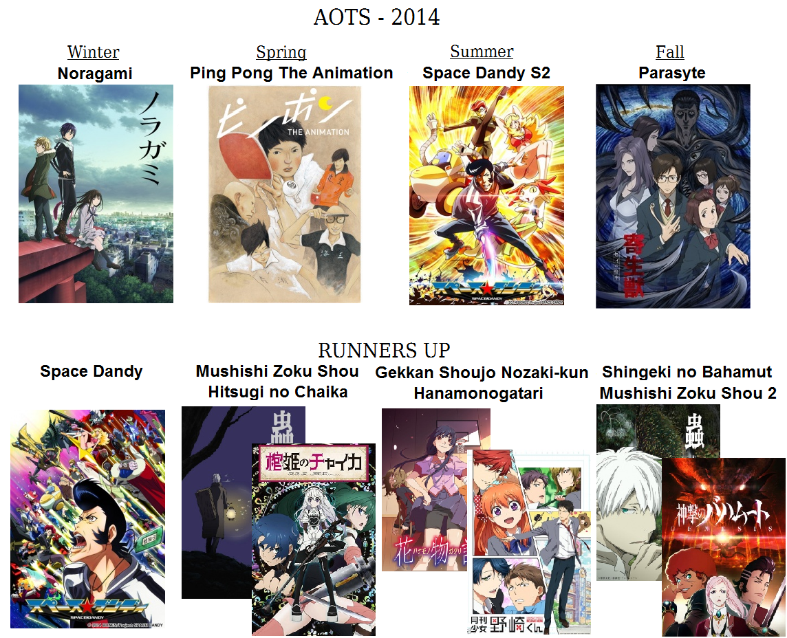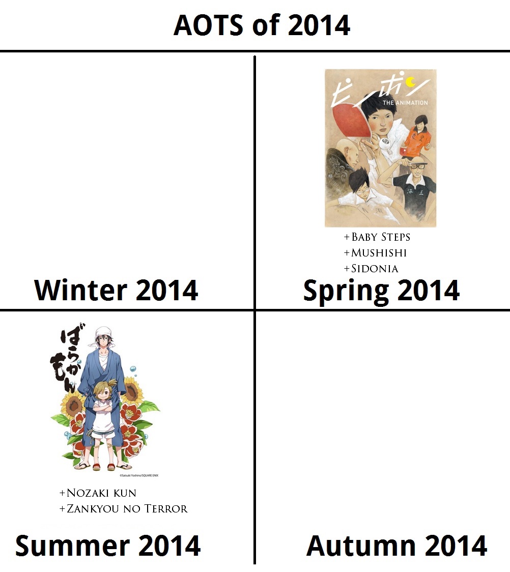 2014年はピンポン・Gレコであとはダンディ・蟲師・ばらかもん・SHIROBAKOかな