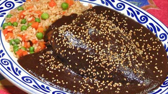 メキシコ料理の「モーレ・ポブラノ(鶏肉にチョコレートや唐辛子、胡麻など使ったソースをかけたもの)」