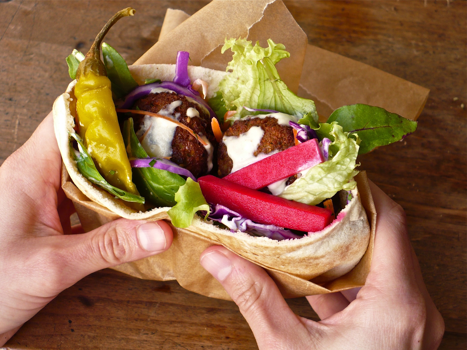 ファラフェル(中東のコロッケのようなもの)を挟んだサンドイッチ