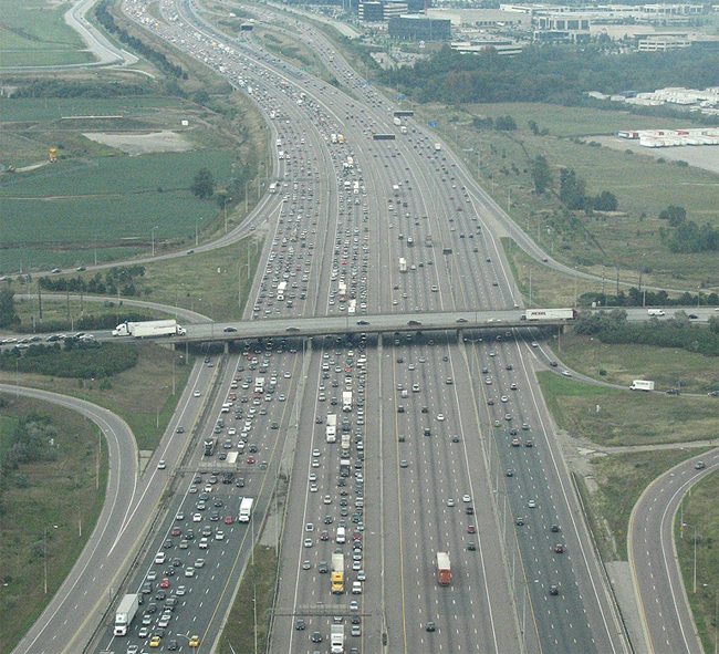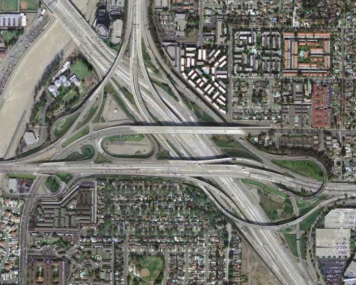 フリーウェイ:アメリカやオーストラリア、南アフリカ共和国などの国々で高速道路を指す単語。アメリカでは最上位の幹線道路として位置づけられ、定義の上では、往復分離交通であり、信号および停止標識がなく一般の道路と立体交差し出入り制限をしているものを言う。(http://ja.wikipedia.org/wiki/フリーウェイ)