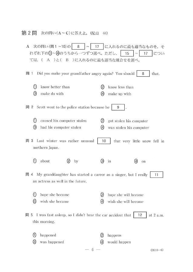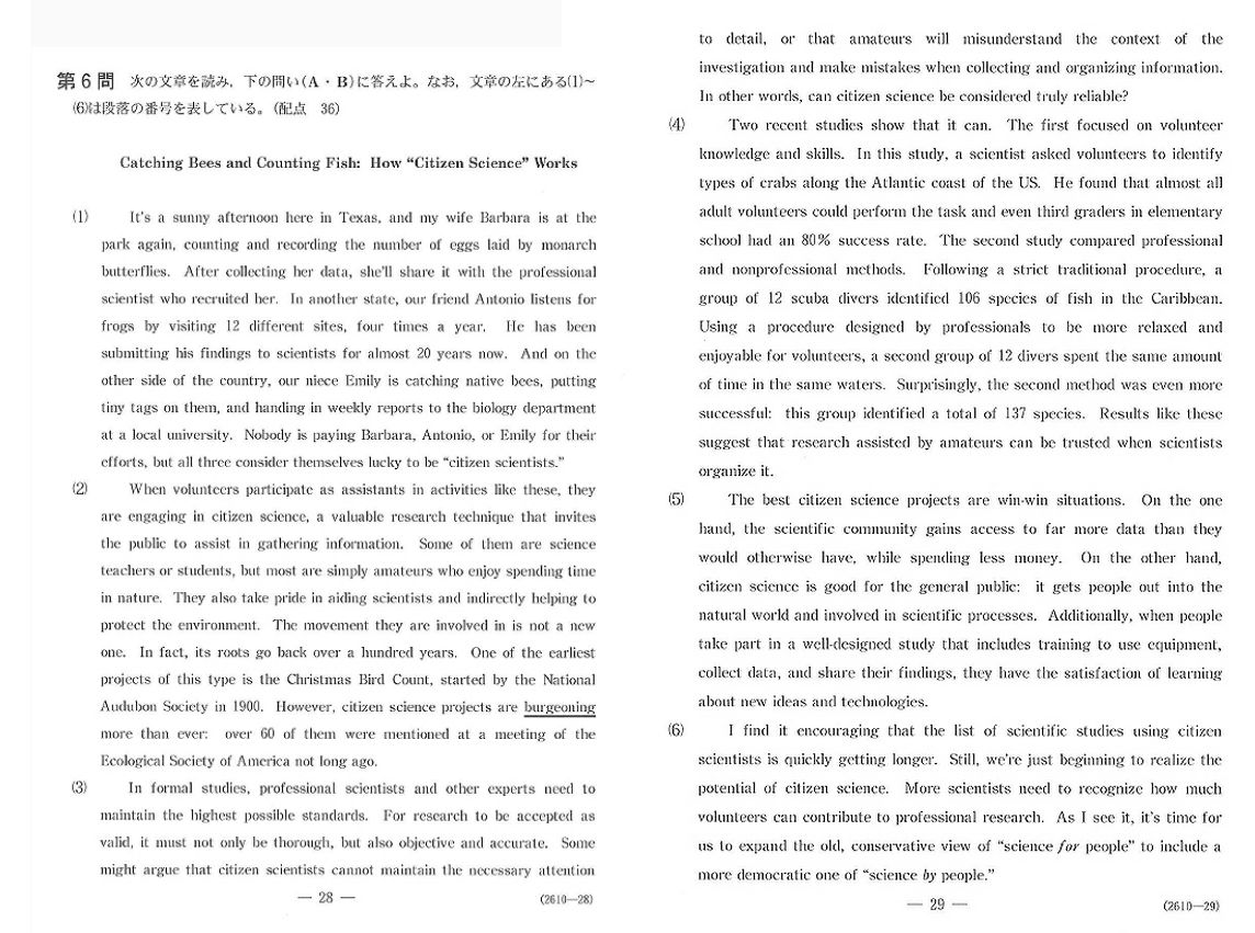 日本の大学入試センター試験の英語の問題なんですが