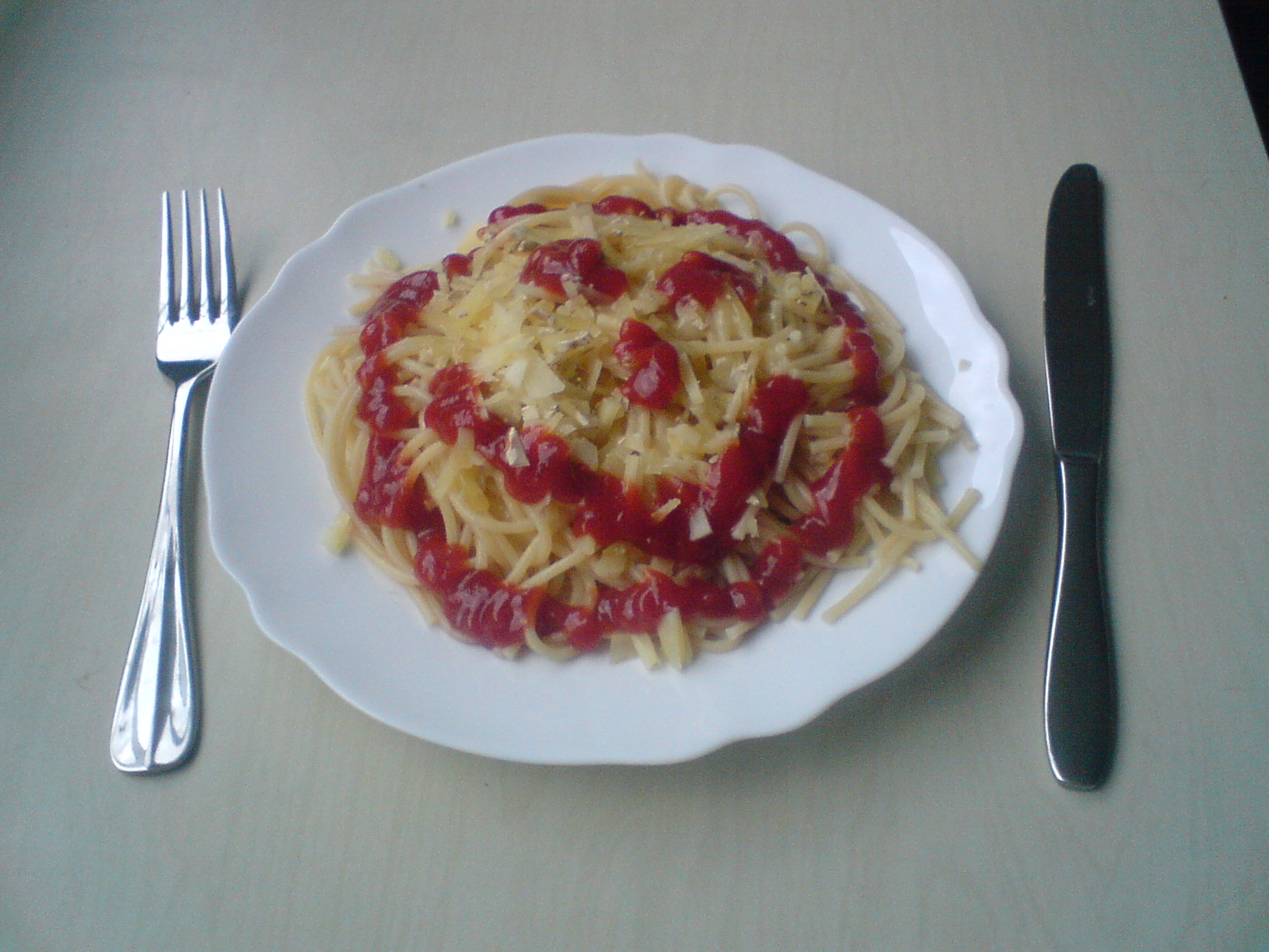 そんな俺でもめんどくさくて作ってた茹でパスタにサラダオイルとケチャップをただ和えたものや