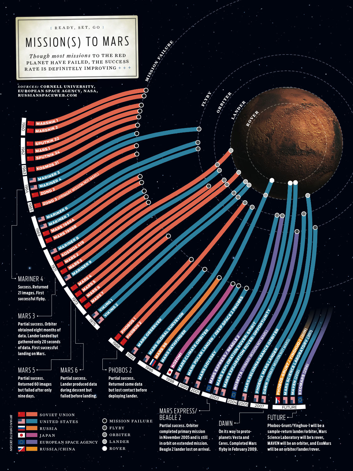 マーズワン:2025年までに火星に人類初の永住地を作ることを目的にするオランダの民間非営利団体。2025年には最初の4人が火星に住み始め、その後は、2年ごとに4人ずつ増やしていくことを予定している。火星から地球に戻ることは現在の技術および資金的に不可能なので、移住者は技術の進歩に伴い地球帰還の手段を得られない限り、火星に永住することになる。