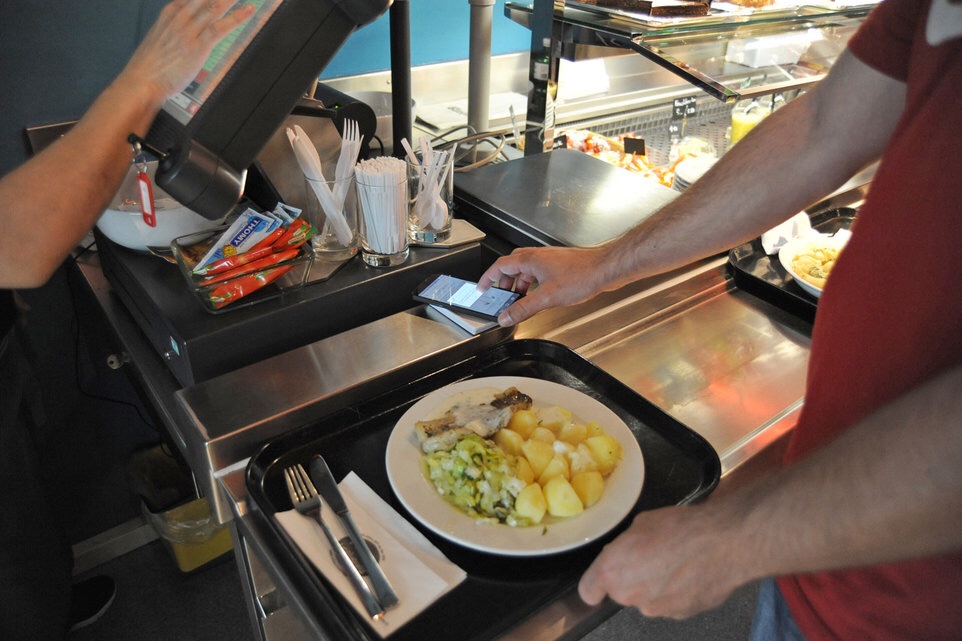 カフェテリア(食堂)で1食7スイspan style=スフラン(約880円)出せば食べられる
