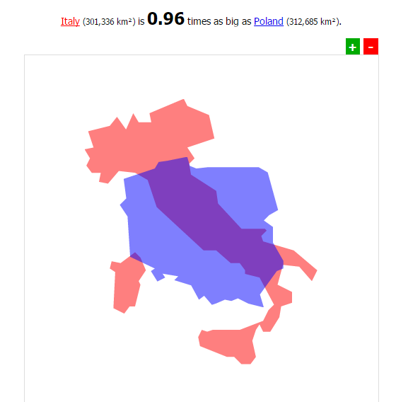 文字通りポーランドよりイタリアは小さい