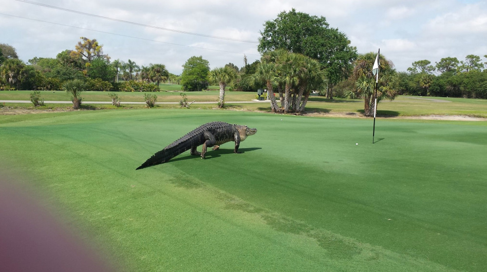 ゴルフ中にあんなワニに出くわしたらゴルフカーでフルスロットルしても追いつかれんだぞ・・・