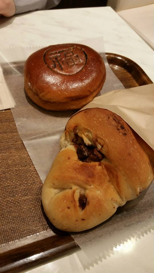 あんこ入りのやわらかいパン、チョコレート入りのバタークロワッサン