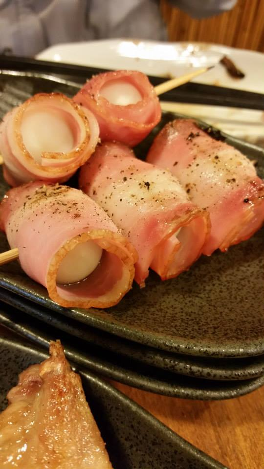 うずらの卵をベーコンで包んだもの。最高に美味かった