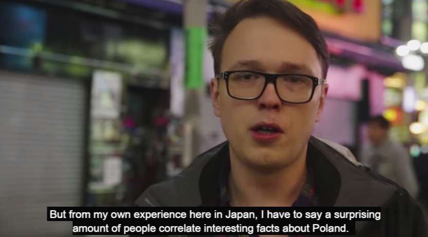 ポーランドについて知ってることを日本の街角で尋ねるてみると「ヨーロッパの国」「寒い場所」「戦争中、ドイツが攻めこんだ場所…」「サッカー選手(レヴァンドフスキ・ピシュチェク)」「美女が多い国」「ワルシャワ」などが挙がる。