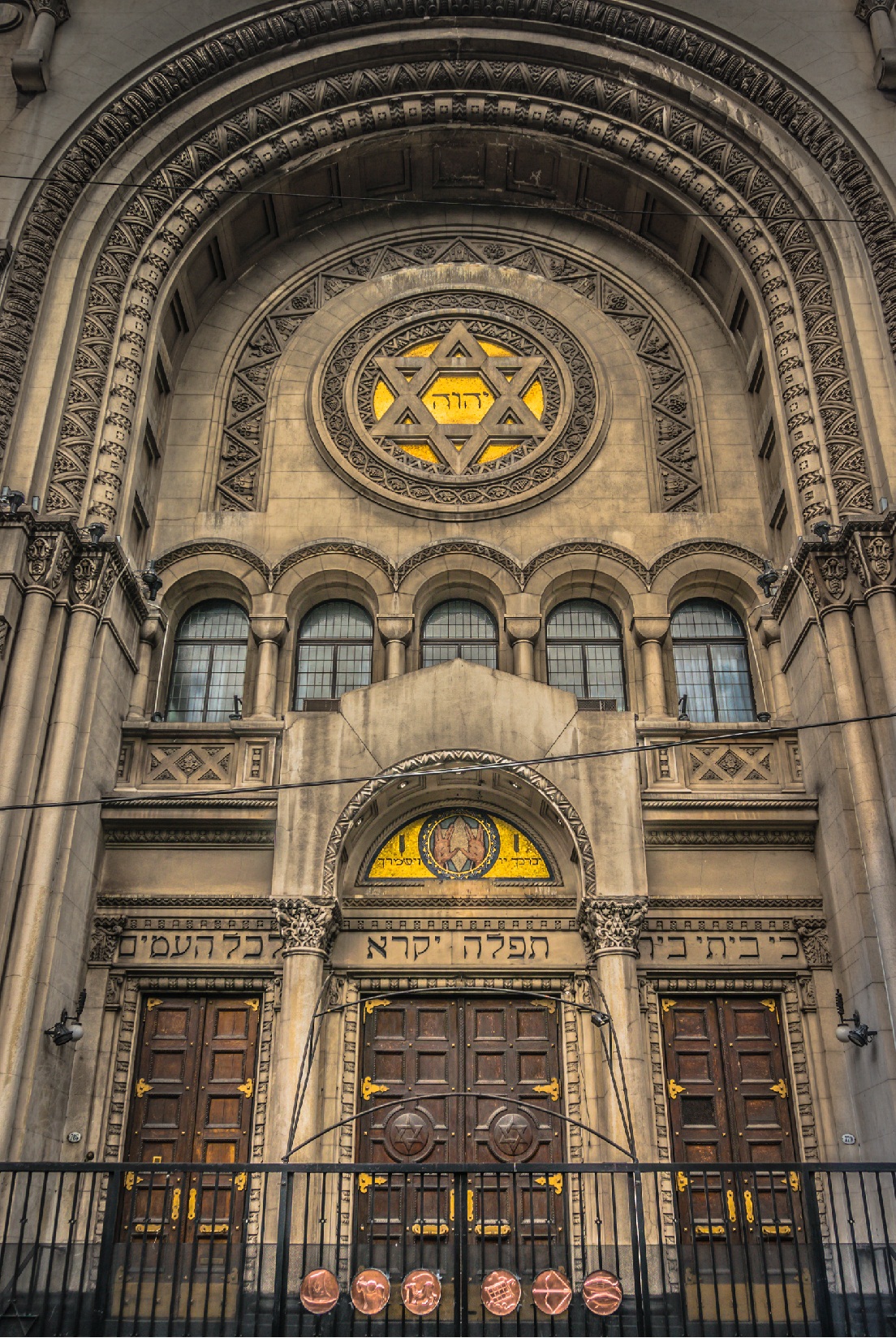 シナゴーグ:ギリシャ語のシュナゴゲー(集会所)に由来するユダヤ教の会堂のこと。聖書には「会堂」の名で登場し、ユダヤ教会と俗称されることもある。キリスト教の教会の前身であるが、役割はやや異なる。もともとは聖書の朗読と解説を行う集会所であった。現在では祈りの場であると同時に、各地のディアスポラのユダヤ人の礼拝や結婚、教育の場となり、また文化行事などを行うコミュニティーの中心的存在ともなっている。(http://ja.wikipedia.org/wiki/シナゴーグ)