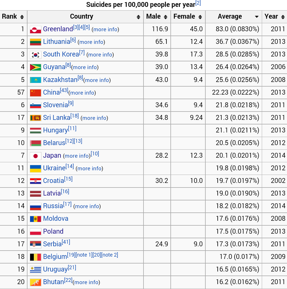 この手のリストでどこかの国は女の方が高い国もあったような気がするけど、ほぼ男の方が高いんだよな・・・