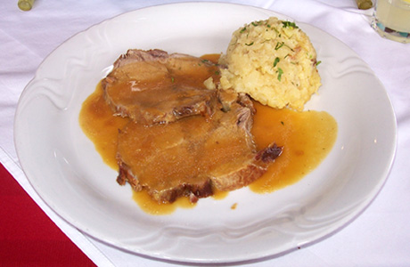 地元の食べ物ならスパイシーなグヤーシュ(東欧のシチュー料理)とポテトパンケーキが大好き