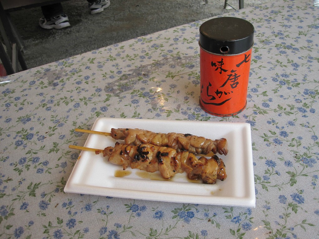 7.焼き鳥。焼いた鶏肉のケバブみたいなもので、これも鎌倉の露店で売られていた。