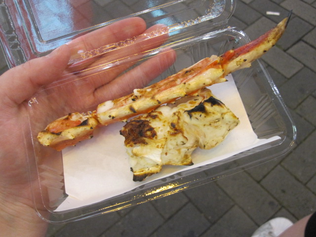 動くカニの脚が目印の店で買った焼きガニ